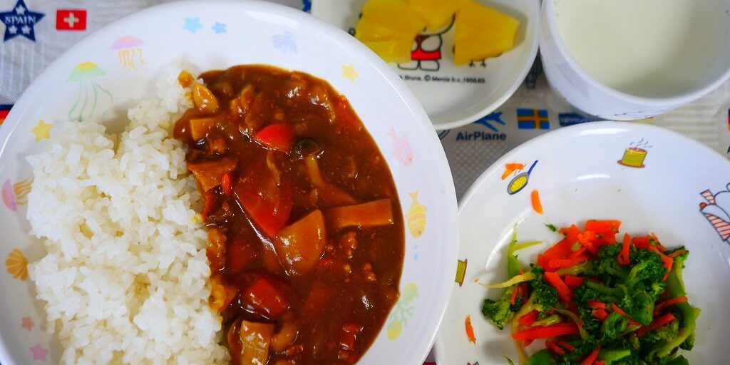10月232024にじいろ給食ブログ~ 今日の給食 ~ ・きのこカレーライス ・ブロッコリーと人参の昆布和え ・牛乳 ・パイン ~ 今日のおやつ ~ ・麦茶 ・豆花 Post navigationPreviousPrevious post:10月23日(水)NextNext post:10月23日(火)「いちご組:きのこ割き」