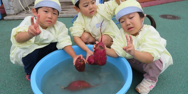 子ども達が洗ってくれたお芋は、給食やおやつになって出てきます。楽しみですね。