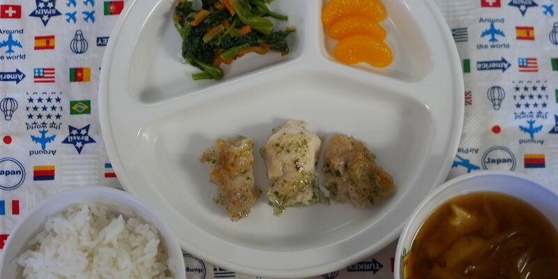 11月132024にじいろ給食ブログ~ 今日の給食 ~ ・鶏肉の青のり焼き ・ほうれん草と人参のおかか和え ・ごはん ・さつまいもと玉ねぎのみそ汁 ・みかん ~ 今日のおやつ ~ ・牛乳 ・マカロニきな粉 Post navigationPreviousPrevious post:11月12日(火)NextNext post:次の投稿