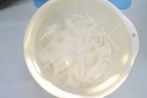 ピーラーを使って、皮むきのように薄く剥きました。