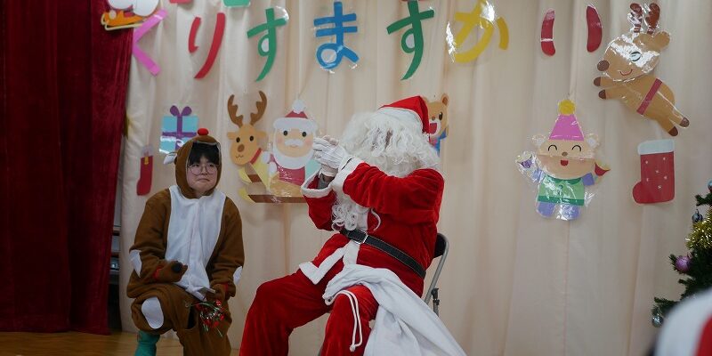 先生の出し物を見た後は、いよいよサンタさんの登場です。たいよう組の代表のお友だちがサンタさんにインタビューをしてくれました。