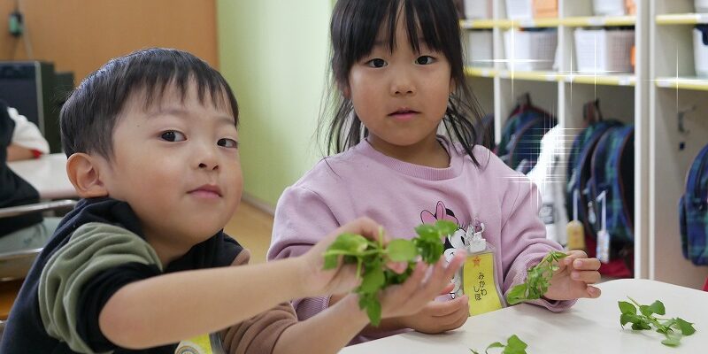 1月72025にじいろブログ今日のおやつは、七草粥を食べました。 食べる前に七草ってどんな種類なのかを栄養士の先生に お話を聞いて観たり、触ったり、とても興味津々でした。 Post navigationPreviousPrevious post:1月7日(火)NextNext post:1月7日(火)「春の七草」
