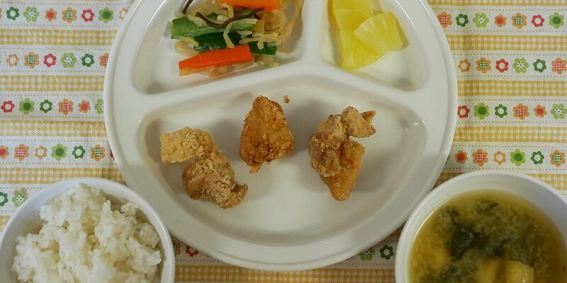 1月82025にじいろ給食ブログ~ 今日の給食 ~ ・鶏の唐揚げ ・カミカミサラダ ・ごはん ・ほうれん草と油揚げのみそ汁 ・パイン ~ 今日のおやつ ~ ・牛乳 ・パンケーキ Post navigationPreviousPrevious post:1月7日(火)「春の七草」NextNext post:1月8日(水)