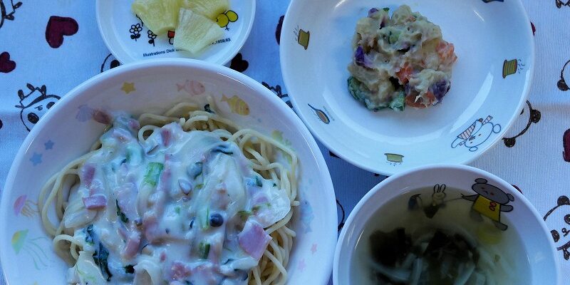 1月142025にじいろ給食ブログ~ 今日の給食 ~ ・クリームサンドスパゲティー ・さつまいものサラダ ・わかめスープ ・パイン ~ 今日のおやつ ~ ・牛乳 ・おかかおにぎり Post navigationPreviousPrevious post:1月10日(金)「幼稚部 鏡開き」NextNext post:1月14日(火)