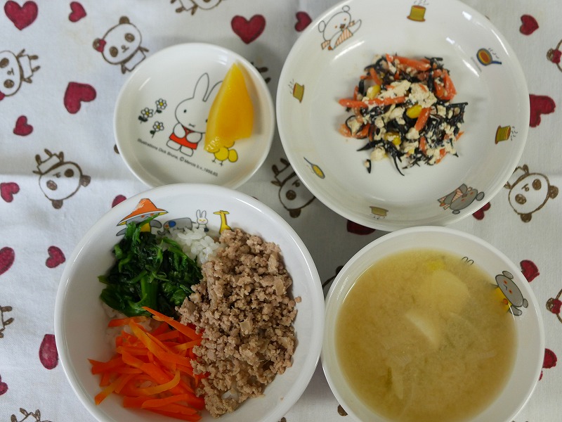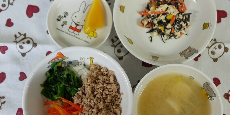 1月162025にじいろ給食ブログ~ 今日の給食 ~ ・三色丼 ・ひじきの白和え ・里芋とねぎのみそ汁 ・もも ~ 今日のおやつ ~ ・牛乳 ・きな粉蒸しパン Post navigationPreviousPrevious post:1月15日(水)NextNext post:1月16日(木)