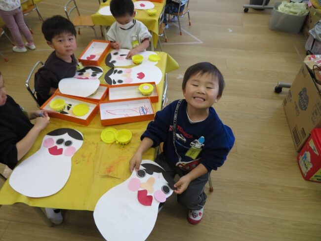 1月17日(金) にじいろブログBy にじいろ保育園2025年1月17日今日はほし組の様子です。 福笑いの制作をしました。みんな楽しそうに作っていました。 「このおくちどこだろうねー」とお話ししながら完成することができました。 一人一人違う顔で、面白い顔ができあがりました。