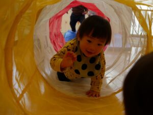 トンネルをくぐったり、巧技台を登ったり降りたりして楽しみました。