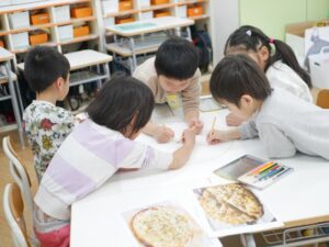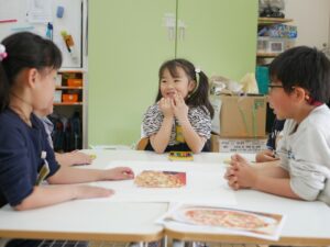 子ども達は、「お肉は、ウインナーかベーコンどっちかがいいと思う」や「チョコは絶対入れたい」など、自分の思いをしっかりと伝える事ができます。