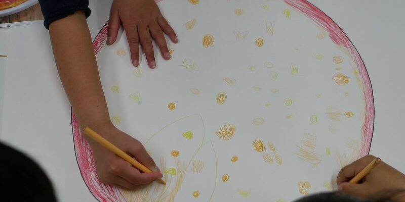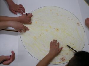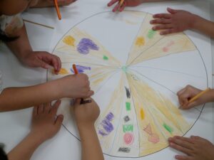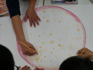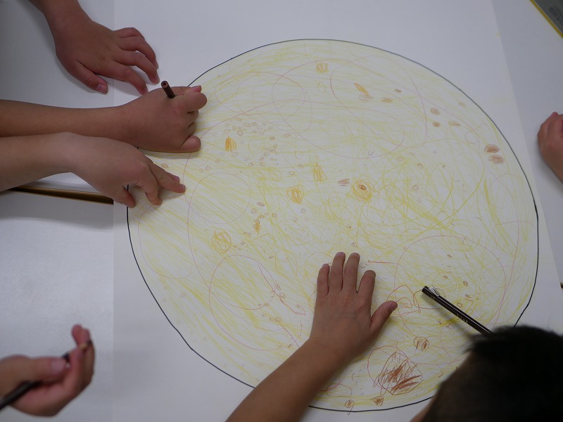 何から描くか順番を決め、色も相談しながら楽しく書いていました。