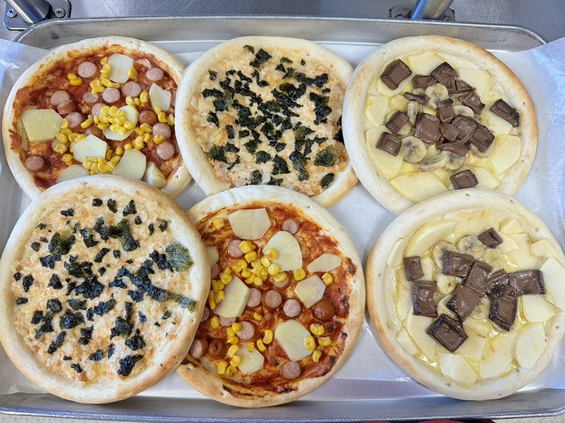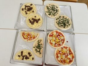 「こっちにもじゃがいものせて」や「これでいいかも」と話しながらおいしいピザになるように頑張っていました。