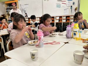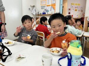 そして自分達で食べてみると、「おいしい」と嬉しそうな声が、お部屋に響き渡りました。