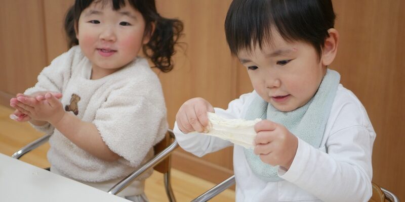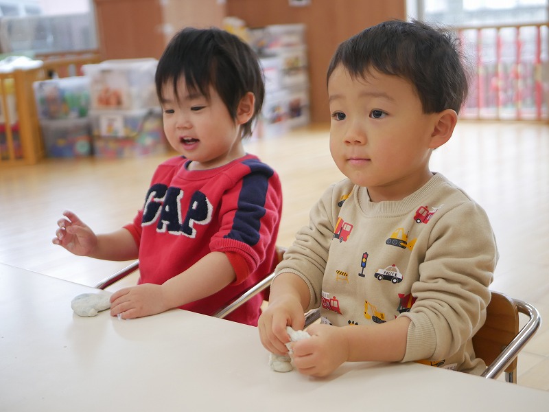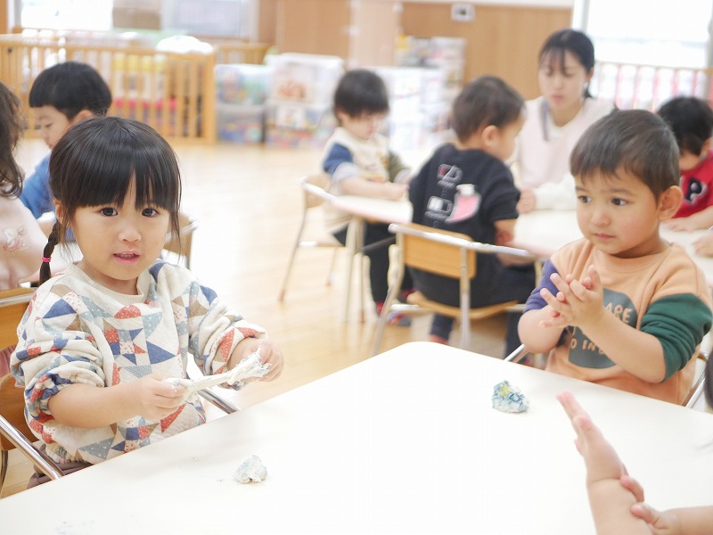 3月52025にじいろブログ今日は、いちご組の様子です。 小麦粉粘土を使って遊びました。 保育者が小麦粉と水を加えて混ぜるなかで少しずつ小麦粉粘土になる様子も観察していました。 出来上がった小麦粉粘土を使ってとても楽しそうに自分たちで考えた物を作って遊びました。 Post navigationPreviousPrevious post:3月5日(水)NextNext post:3月6日(木)