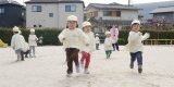 地面に好きな絵を描いたり、保育者と一緒に鬼ごっこをしました。