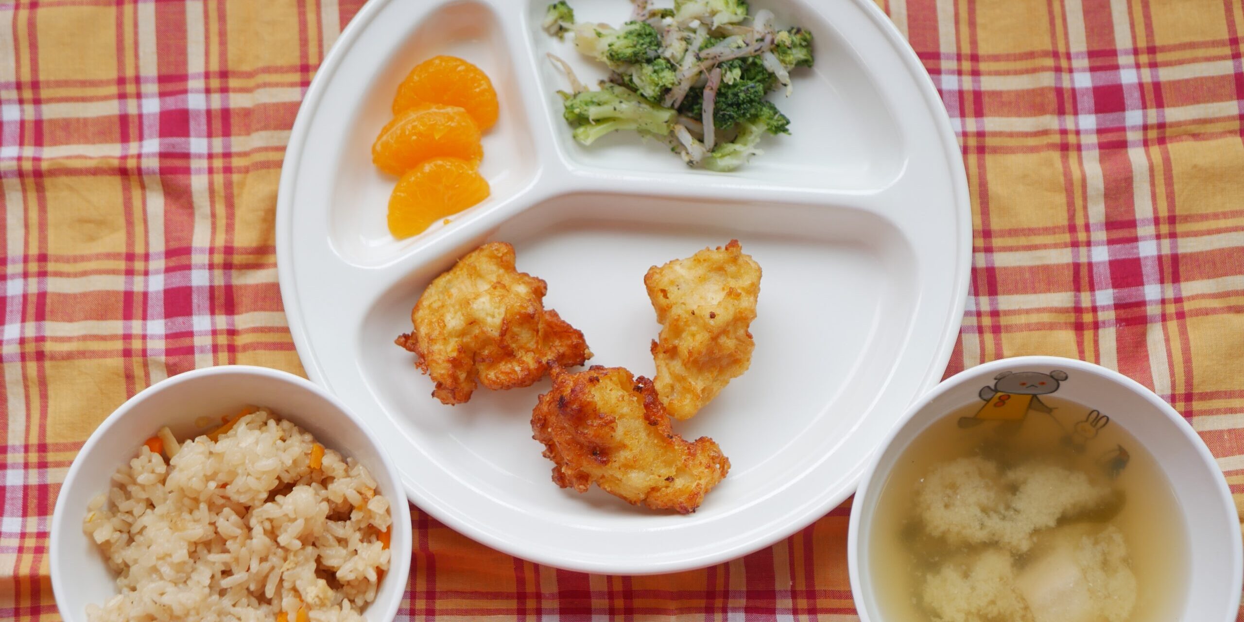 4月282025にじいろ給食ブログ~ 今日の給食 ~ ・鶏ひき肉と豆腐の落とし揚げ ・ブロッコリーのゆかり和え ・たけのこごはん ・お麩とわかめのみそ汁 ・みかん ~ 今日のおやつ ~ ・麦茶 ・お誕生日ケーキ Post navigationPreviousPrevious post:4月28日(月)NextNext post:4月30日(水)