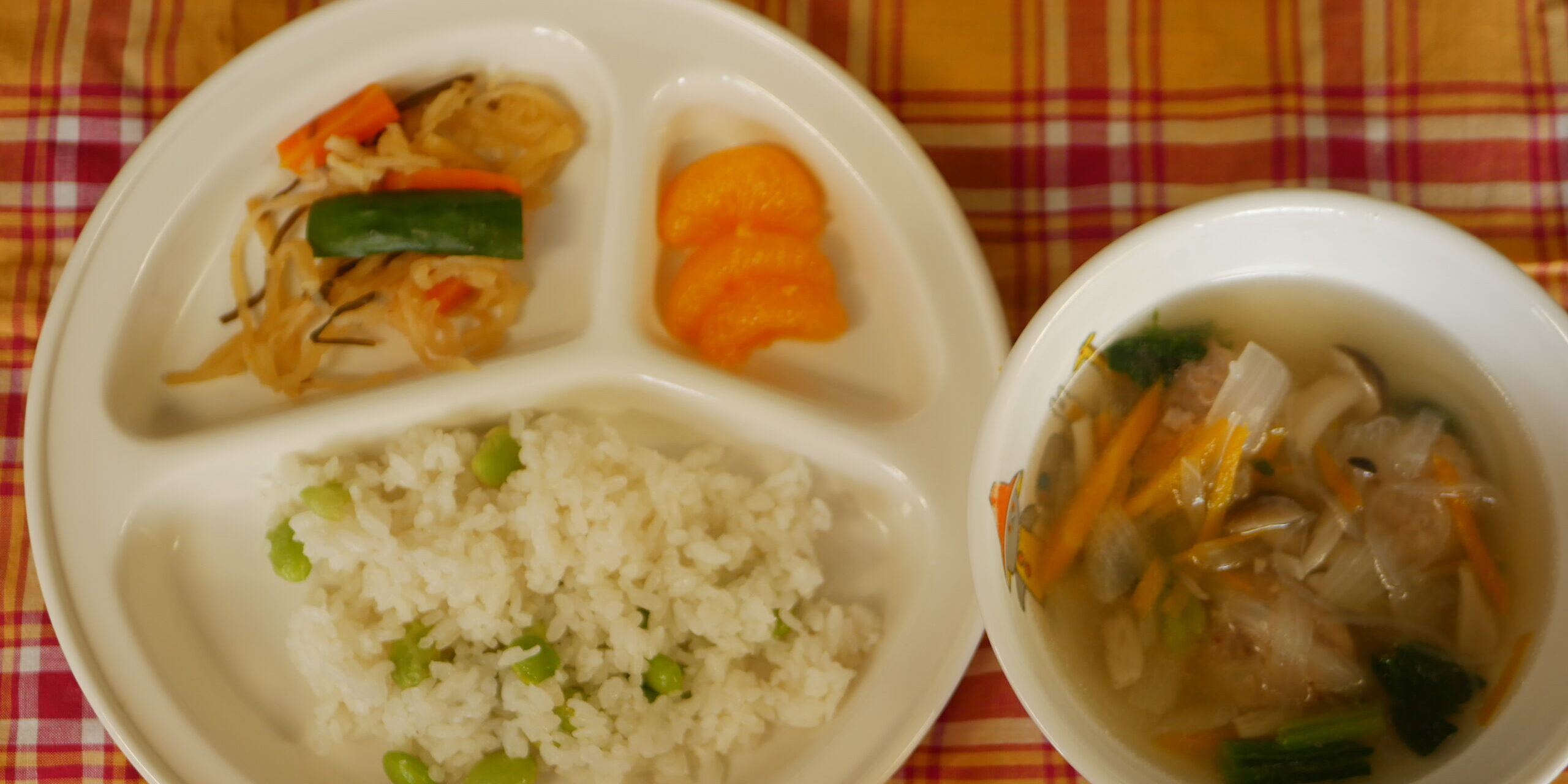 7月22025にじいろ給食ブログ~ 今日の給食 ~ ・肉団子スープ ・カミカミサラダ ・えだ豆ごはん ・みかん ~ 今日のおやつ ~ ・麦茶 ・コーンフレーク Post navigationPreviousPrevious post:7月1日(火)NextNext post:7月3日(木)