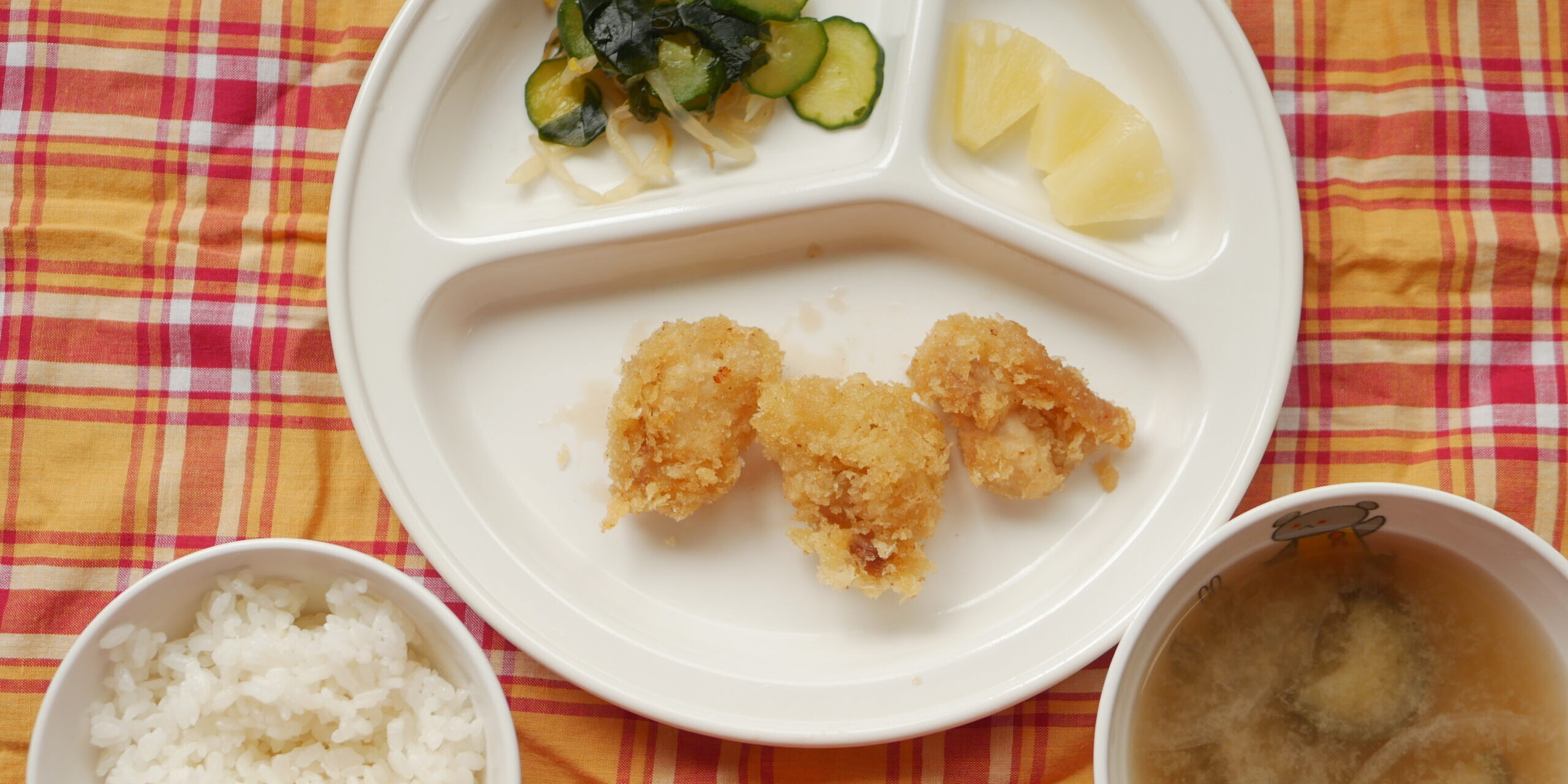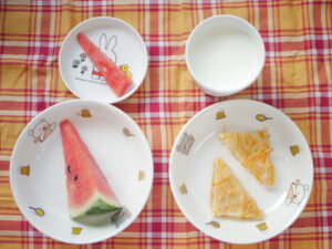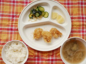 7月32025にじいろ給食ブログ~ 今日の給食 ~ ・ひと口チキンカツ ・きゅうりの酢の物 ・ごはん ・なすと玉ねぎのみそ汁 ・パイン ~ 今日のおやつ ~ ・牛乳 ・チヂミ ・スイカ(保育部) 幼稚部は、「スイカ割り」をした後に食べました。 Post navigationPreviousPrevious post:7月2日(水)NextNext post:7月3日(木)