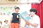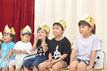 今日は7月のお誕生日の誕生日会がありました 誕生児は名前を呼ばれ緊張しながらも舞台に上がっていました それぞれインタビューを受ける中で自信を持って発表出来たり 他の誕生児と好きな食べ物が一緒だったりと発見がありました 誕生日ケーキを囲み、みんなでお祝いをしてから、誕生児で「フ―ッ!」と 一息でろうそくの灯を消していました 先生の出し物「変身トンネル」に子ども達も楽しんで見ていました Post navigationPreviousPrevious post:7月28日(月)NextNext post:7月29日(火)