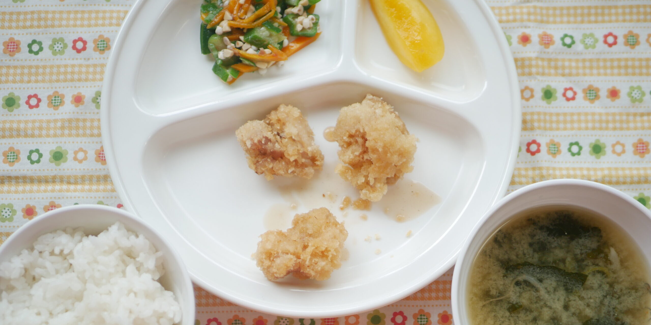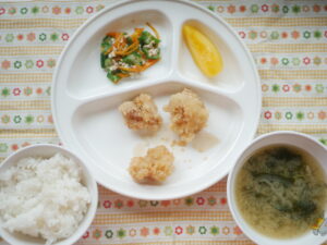 8月72025にじいろ給食ブログ~ 今日の給食 ~ ・ひと口チキンカツ ・オクラの納豆和え ・ごはん ・ほうれん草ともやしのみそ汁 ・もも ~ 今日のおやつ ~ ・牛乳 ・芋もち田楽 Post navigationPreviousPrevious post:8月7日(木)NextNext post:8月8日(金)