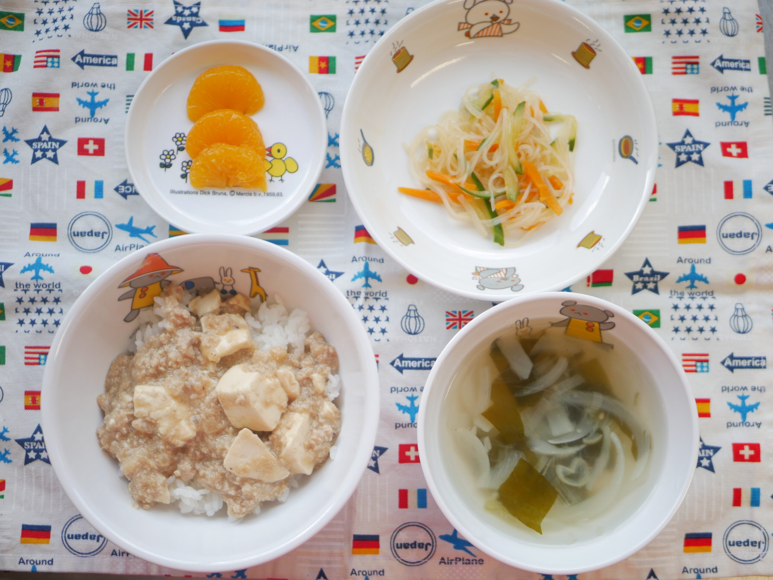 8月252025にじいろ給食ブログ~ 今日の給食 ~ ・マーボー豆腐丼 ・春雨サラダ ・わかめスープ ・みかん ~ 今日のおやつ ~ ・麦茶 ・お誕生日ケーキ Post navigationPreviousPrevious post:8月22日(金)NextNext post:8月25日(月)