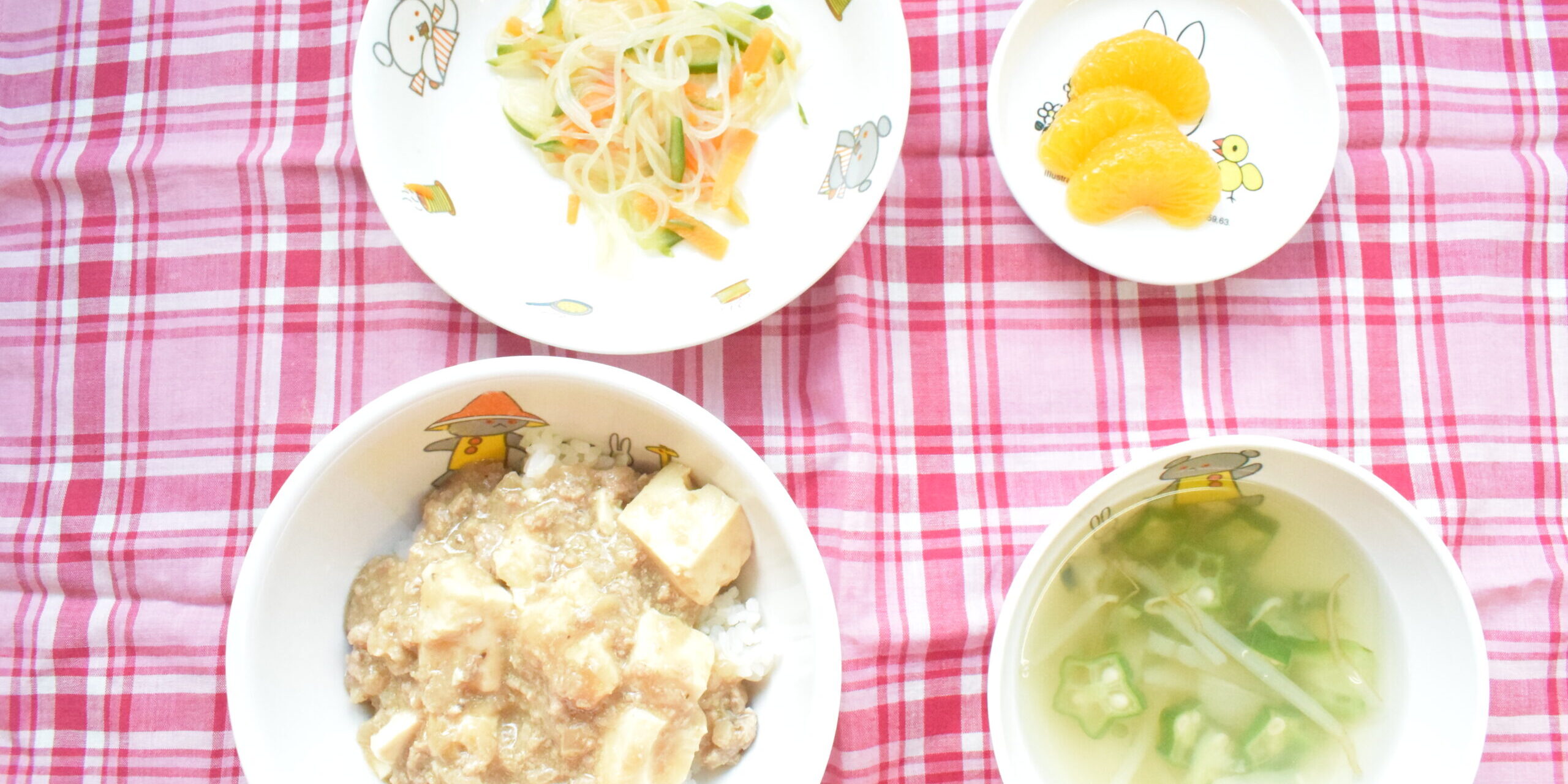 9月12025にじいろ給食ブログ~ 今日の給食 ~ ・マーボー豆腐丼 ・春雨サラダ ・オクラのスープ ・みかん ~ 今日のおやつ ~ ・牛乳 ・冷やしたぬきうどん Post navigationPreviousPrevious post:9月11日(木)NextNext post:9月2日(火)