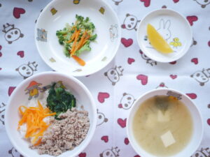 9月302025にじいろ給食ブログ~ 今日の給食 ~ ・三色丼 ・ブロッコリーと人参のおかか和え ・豆腐とわかめのみそ汁 ・もも ~ 今日のおやつ ~ ・牛乳 ・芋もち田楽 Post navigationPreviousPrevious post:9月29日(月)NextNext post:9月30日(火)