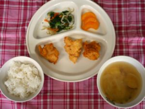 10月242025にじいろ給食ブログ~ 今日の給食 ~ ・鶏ひき肉と豆腐の落とし揚げ ・三色ナムル ・ごはん ・さつまいもと玉ねぎのみそ汁 ・みかん ~ 今日のおやつ ~ ・牛乳 ・きな粉蒸しパン Post navigationPreviousPrevious post:10月23日(木)NextNext post:10月24日(金)