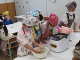 午後、おやつのおにぎり作りをしました。