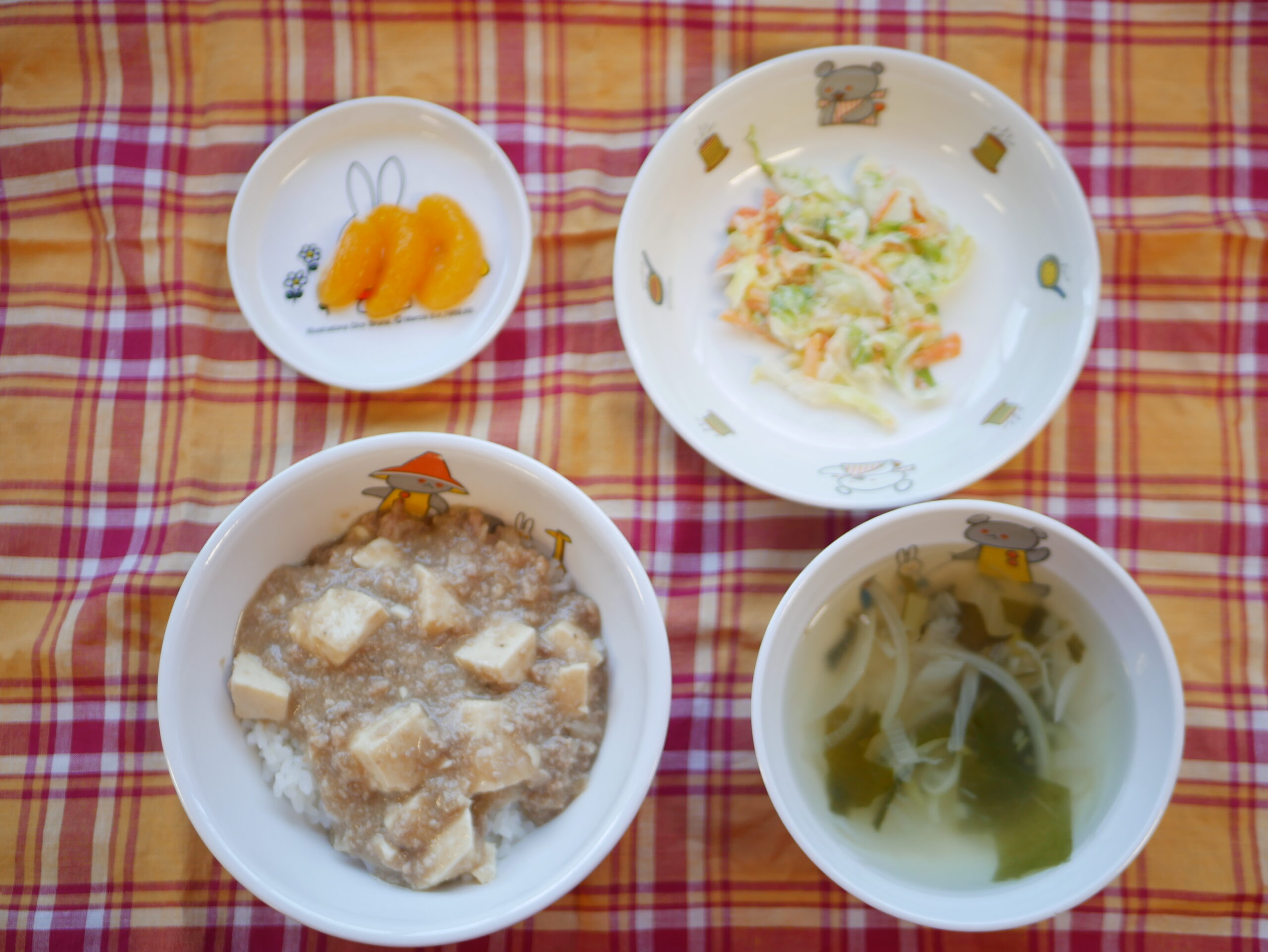11月282025にじいろ給食ブログ~ 今日の給食 ~ ・マーボー豆腐丼 ・コールスローサラダ ・わかめスープ ・みかん ~ 今日のおやつ ~ ・牛乳 ・大学芋 Post navigationPreviousPrevious post:11月28日(金)NextNext post:12月1日(月)