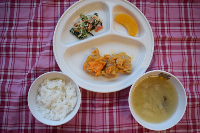 ~ 今日の給食 ~ ・鶏の唐揚げ ・ひじきの白和え ・ごはん ・ほうれん草としめじのみそ汁 ・パイン ~ 今日のおやつ ~ ・牛乳 ・さつまいもおやき