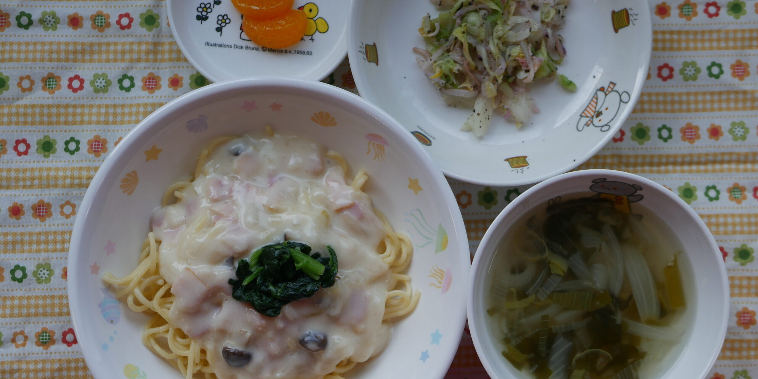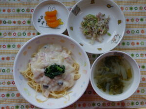 12月22025にじいろ給食ブログ~ 今日の給食 ~ ・クリームスパゲティー ・キャベツのゆかり和え ・わかめスープ ・みかん ~ 今日のおやつ ~ ・牛乳 ・おかかおにぎり Post navigationPreviousPrevious post:12月1日(月)NextNext post:12月2日(火)