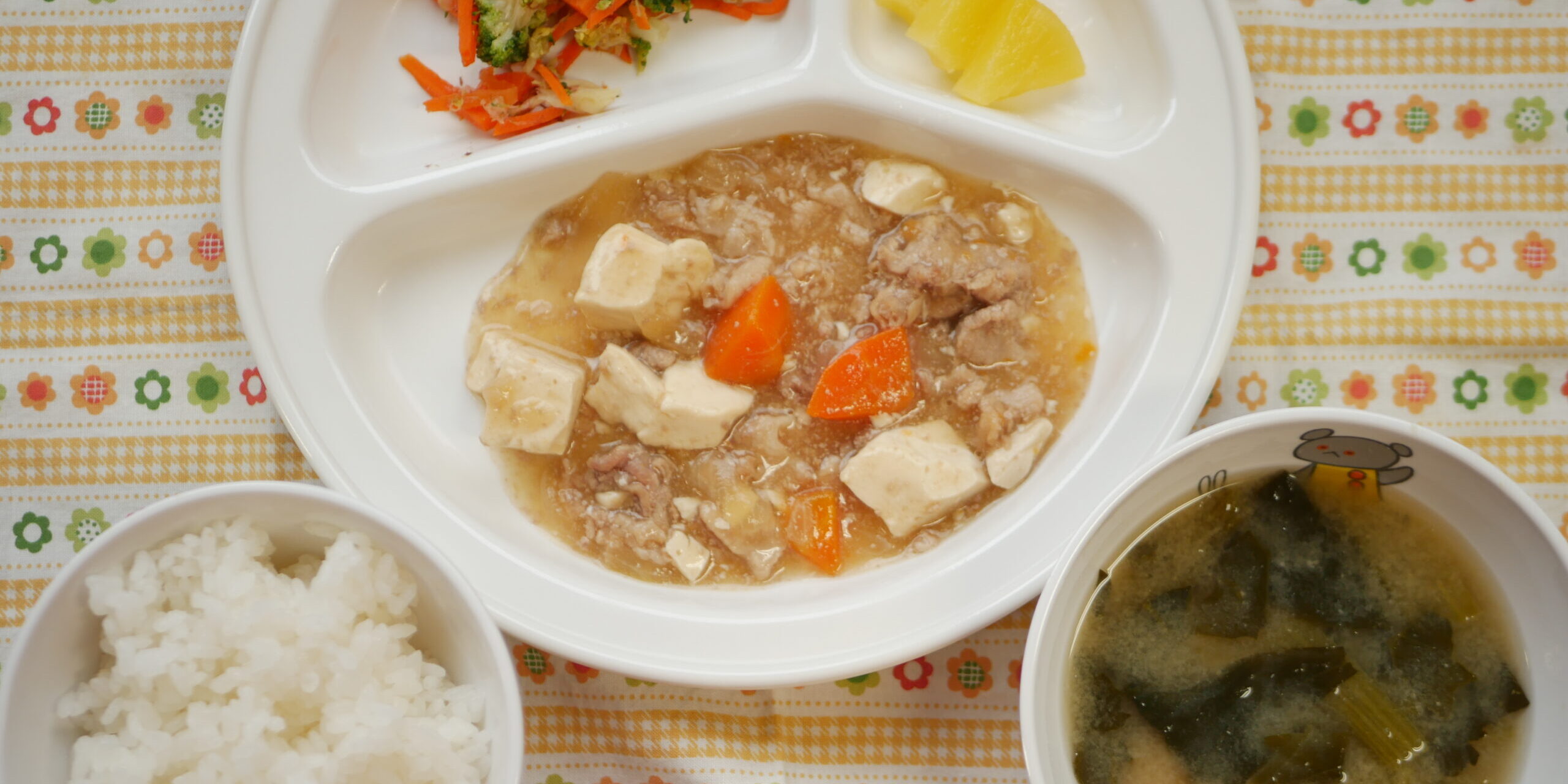 12月32025にじいろ給食ブログ~ 今日の給食 ~ ・肉豆腐 ・ブロッコリーと人参のおかか和え ・ごはん ・お麩とほうれん草のみそ汁 ・パイン ~ 今日のおやつ ~ ・牛乳 ・りんごゼリー ・ビスケット Post navigationPreviousPrevious post:12月2日(火)NextNext post:12月3日(水)