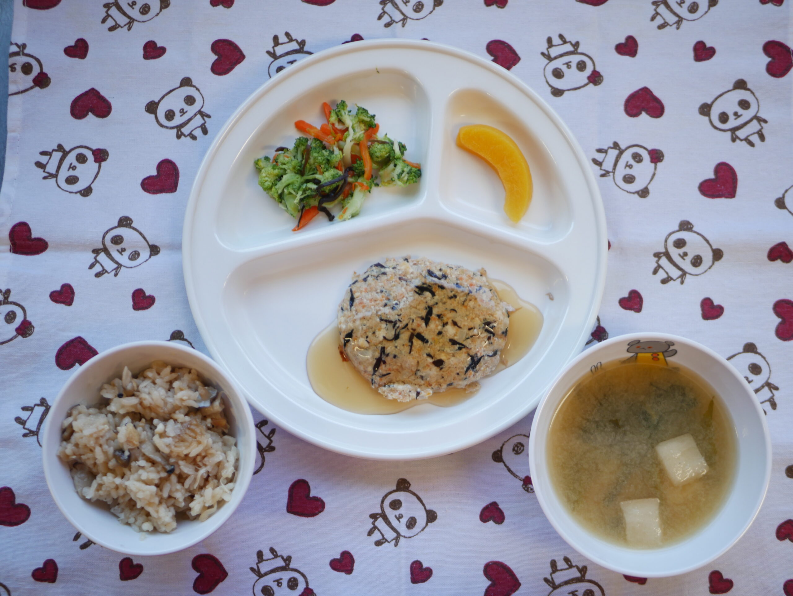 12月82025にじいろ給食ブログ~ 今日の給食 ~ ・ひじきの和風ハンバーグ ・ブロッコリーと人参の昆布和え ・きのこの炊き込みごはん ・お麩とほうれん草のみそ汁 ・もも ~ 今日のおやつ ~ ・牛乳 ・クッキー Post navigationPreviousPrevious post:12月8日(月)