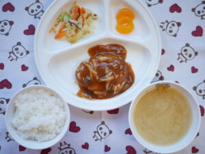 12月82025にじいろ給食ブログ~ 今日の給食 ~ ・きのこの煮込みハンバーグ ・キャベツと人参の昆布和え ・ごはん ・さつまいもと玉ねぎのみそ汁 ・みかん ~ 今日のおやつ ~ ・麦茶 ・コーンフレーク Post navigationPreviousPrevious post:12月5日(金)NextNext post:12月8日(月)