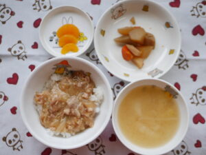 12月112025にじいろ給食ブログ~ 今日の給食 ~ ・豚丼 ・根菜のほっこり煮 ・白菜ともやしのみそ汁 ・みかん ~ 今日のおやつ ~ ・牛乳 ・ドーナツ Post navigationPreviousPrevious post:12月10日(水)NextNext post:12月11日(木)