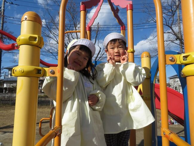 今日のたいよう組の様子です。 ふれあい公園へ行きました。 風が少し強かったですが、子どもたちはこおり鬼や鬼ごっこ、どろけいなど元気いっぱい遊んでいました。