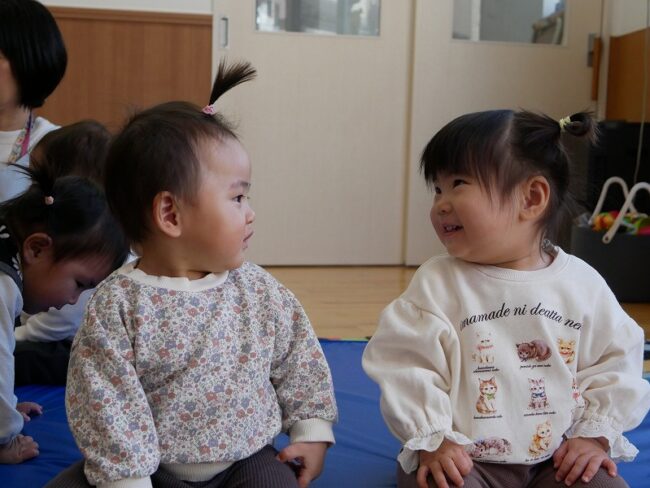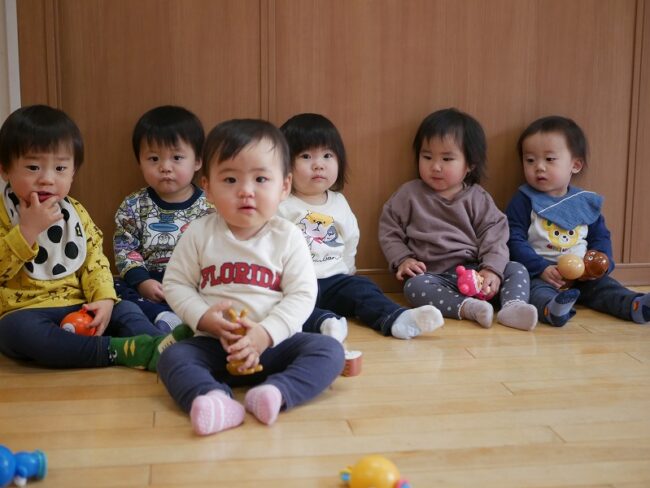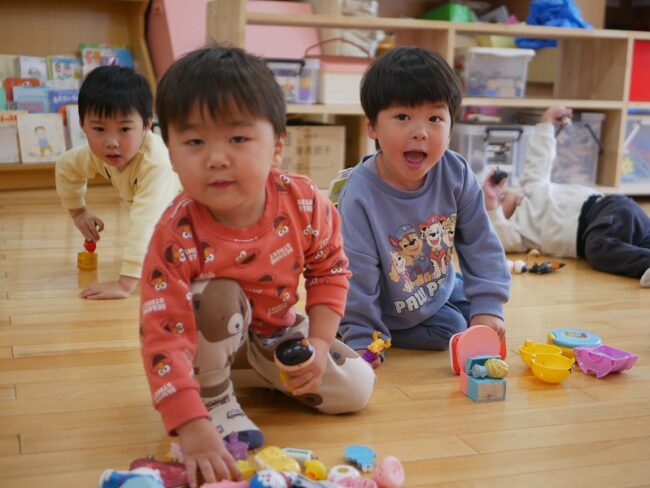 今日のもも組の様子です。 お部屋で午後おやつの時間までおもちゃで遊んでいました。 みんなで輪になって写真を撮りました。 カメラを向けるとアピールしてくれる子が増え 日々成長を感じています。