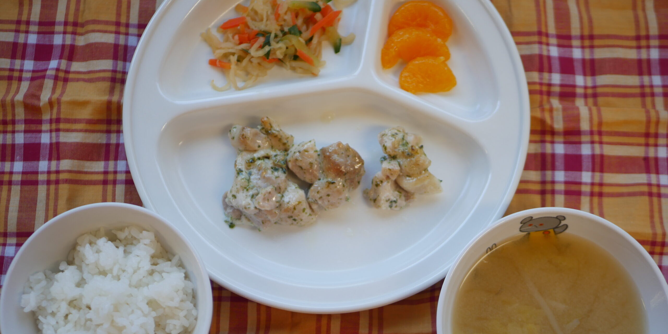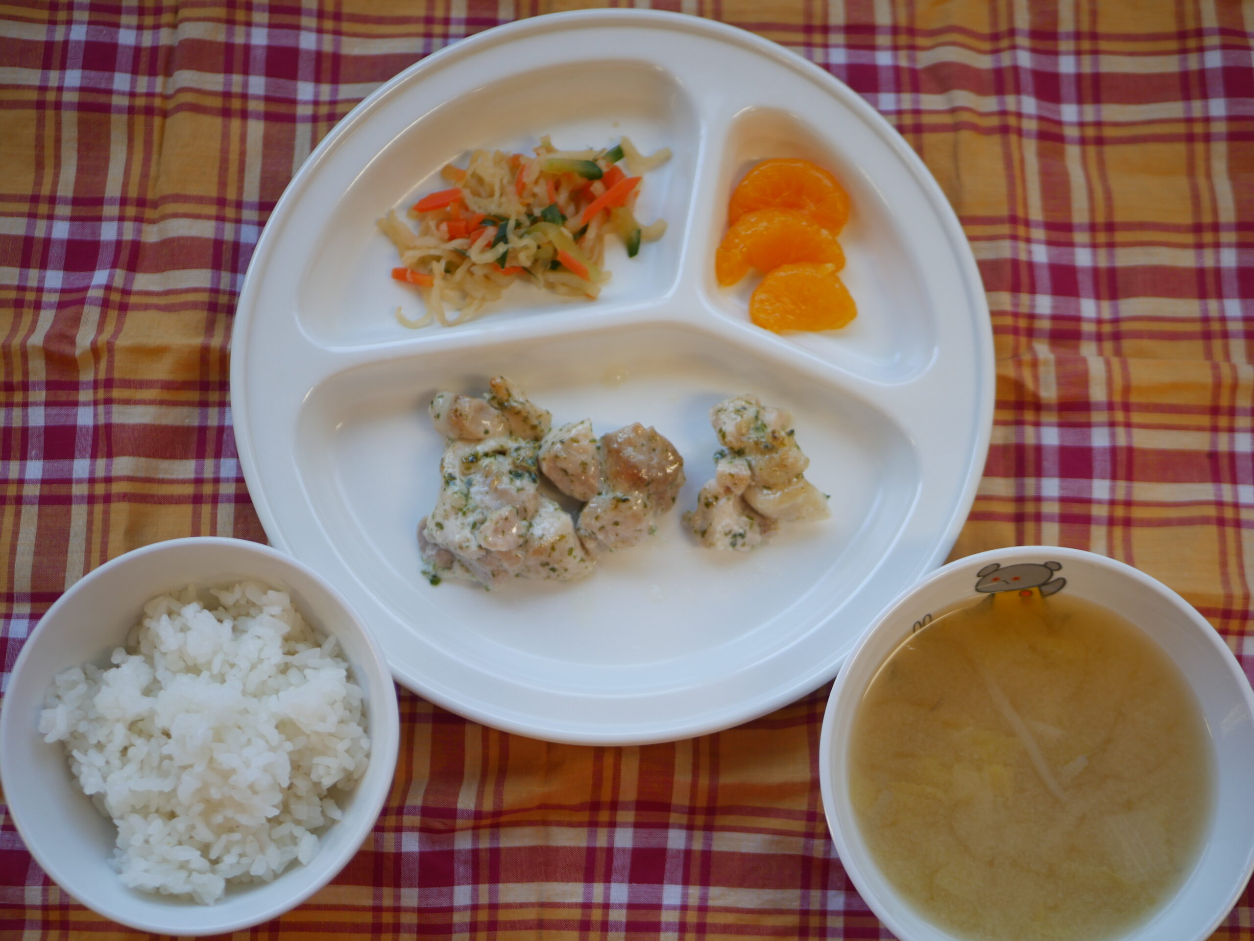 1月142026にじいろ給食ブログ~ 今日の給食 ~ ・鶏肉の青のり焼き ・切り干し大根のサラダ ・ごはん ・白菜ともやしのみそ汁 ・みかん ~ 今日のおやつ ~ ・牛乳 ・お麩ラスク Post navigationPreviousPrevious post:1月13日(火)NextNext post:1月15日(木)