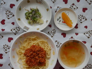 1月202026にじいろ給食ブログ~ 今日の給食 ~ ・ミートソーススパゲティー ・ブロッコリーのゆかり和え ・ジュリアンスープ ・もも ~ 今日のおやつ ~ ・牛乳 ・納豆チャーハン Post navigationPreviousPrevious post:1月19日(月)NextNext post:1月20日(火)