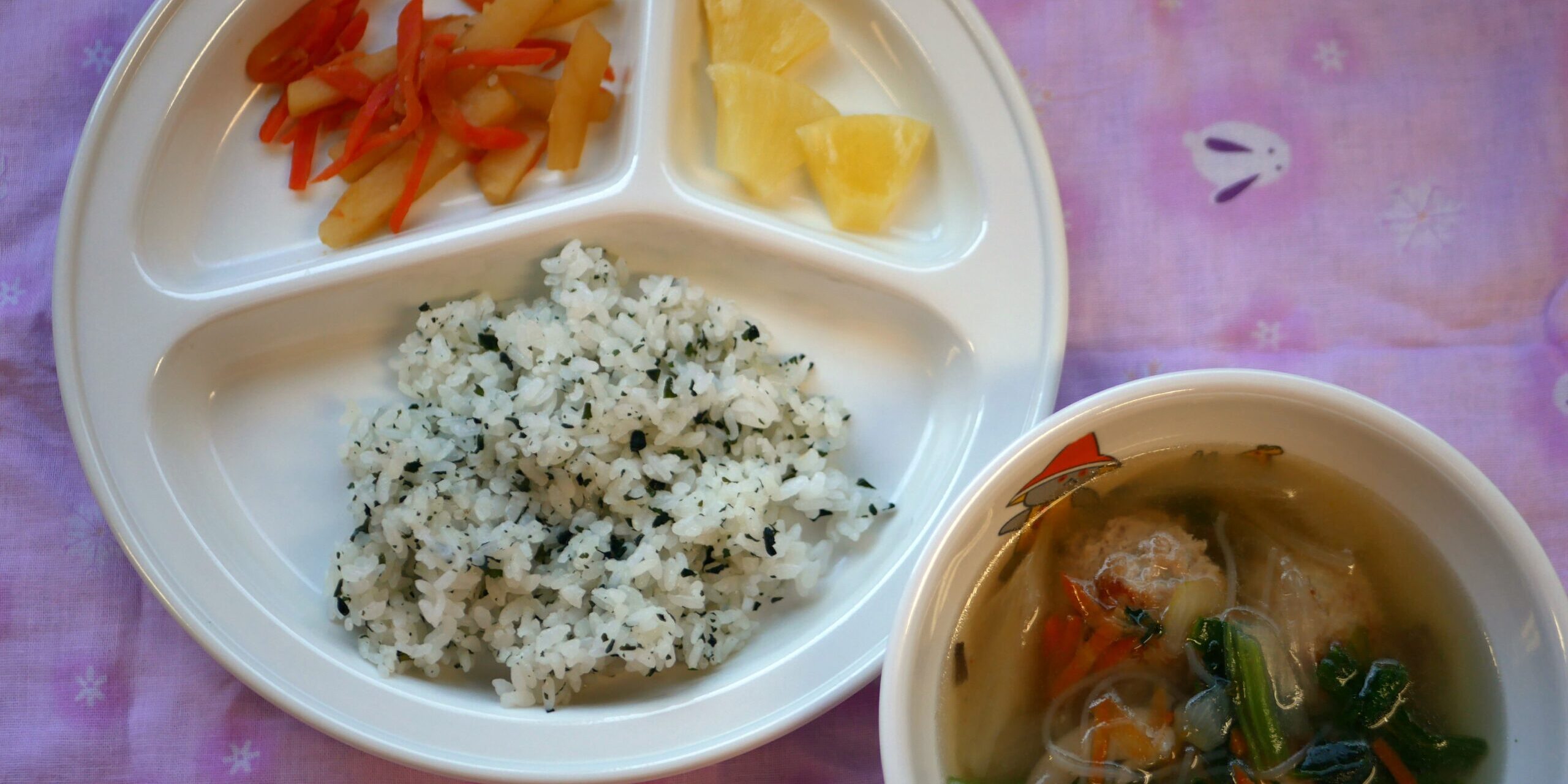 1月302026にじいろ給食ブログ~ 今日の給食 ~ ・肉団子スープ ・じゃがいもきんぴら ・わかめごはん ・パイン ~ 今日のおやつ ~ ・コーンスープ ・ビスケット Post navigationPreviousPrevious post:1月29日(木)NextNext post:1月30日(金)「切り干し大根作り」