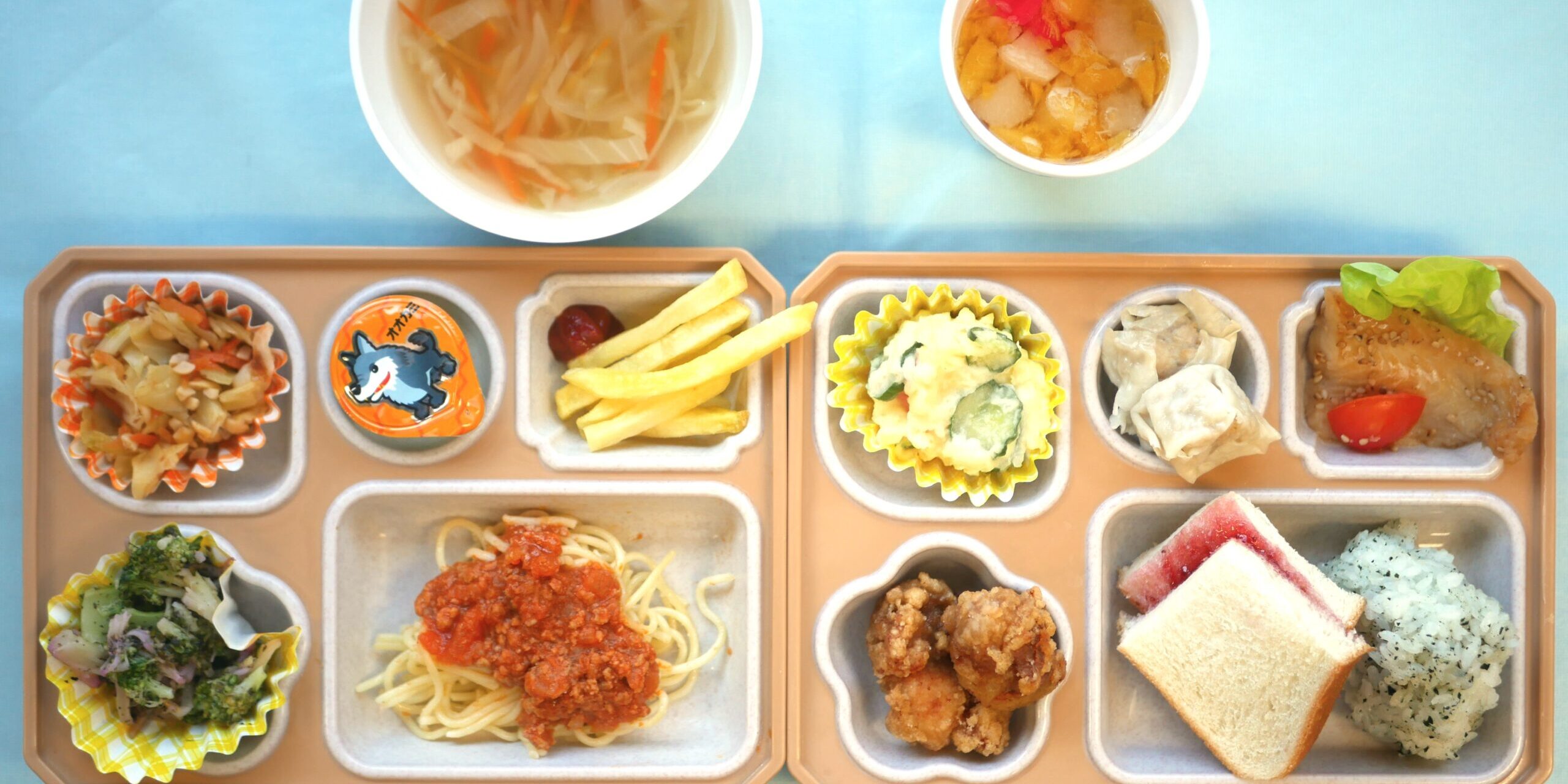 ・わかめおにぎり ・ジャムサンド ・ミートソーススパゲティー