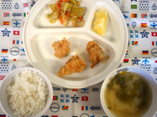 3月12日(木) にじいろ給食ブログBy にじいろ保育園2026年3月12日~ 今日の給食 ~ ・ひと口チキンカツ ・キャベツの納豆和え ・ごはん ・かぶと油揚げのみそ汁 ・パイン ~ 今日のおやつ ~ ・牛乳 ・パンケーキ