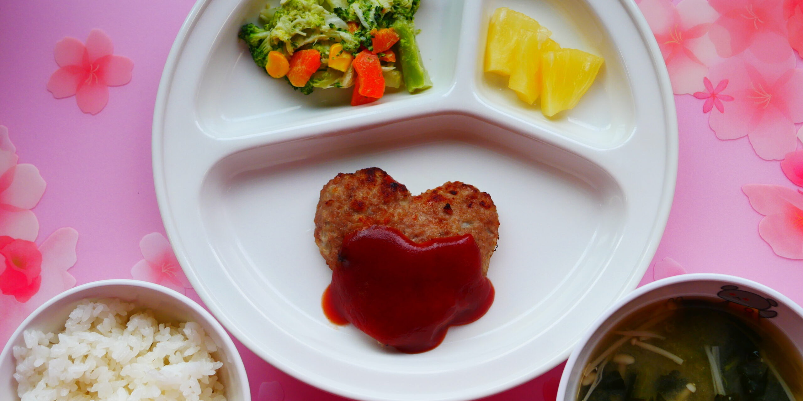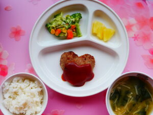 ハンバーグの形を見ると「ハートだ」ととても喜んでくれました。