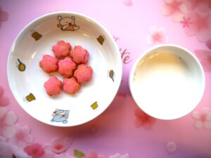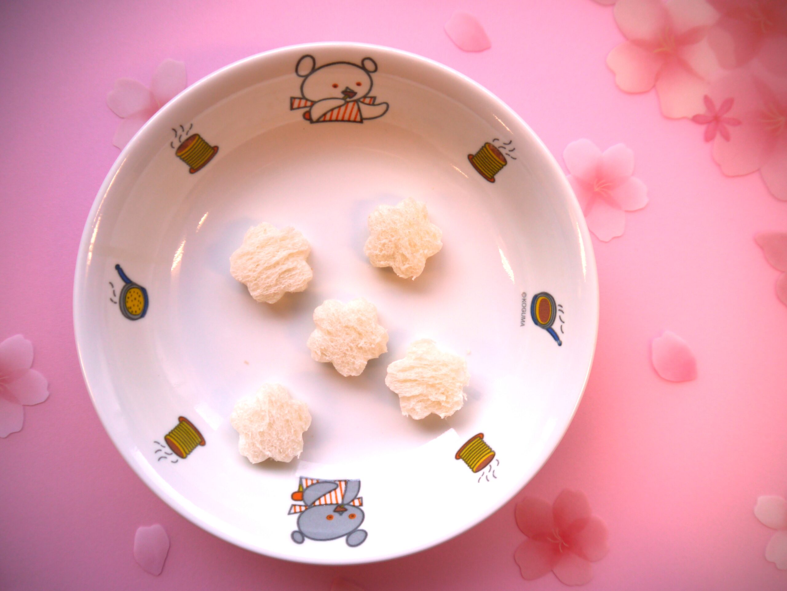 離乳食(後期食)の午後おやつのひと口パンも桜の形にしました。