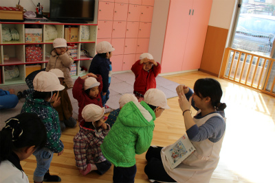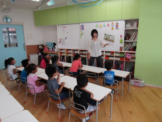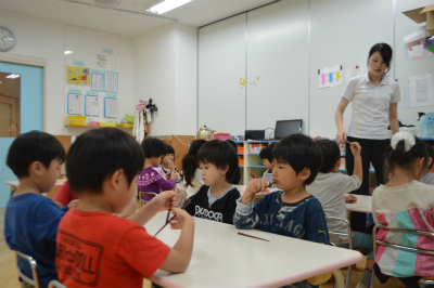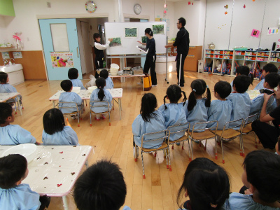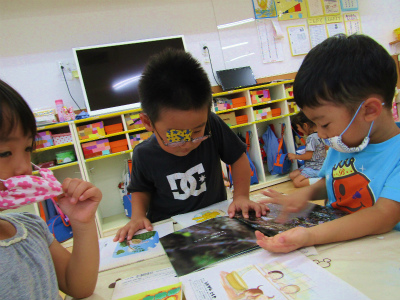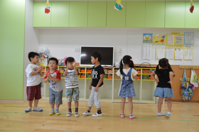 今日は英語教室がありました。 たいよう組は、絵本を英語で読んでもらいみんなとても真剣に聞いていました。 積極的に手をあげていますね(^-^) 出席カードが全部集まったお友達には先生からシールの…