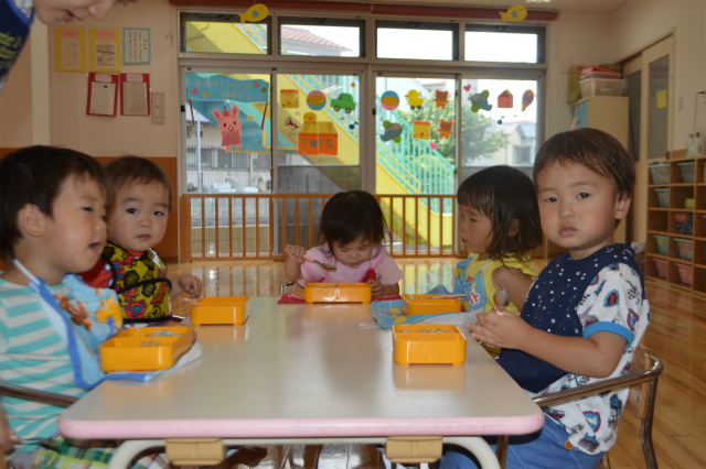 今日のもも組さんは運動会の予行練習をしました。 いつもとは違い、園の2階の広いホールに集まって 競技に挑戦です。 いつもと違う雰囲気に緊張しながら頑張りました。 その後は大好きな給食です♪ 以前はみんな違う形状や食材でし…