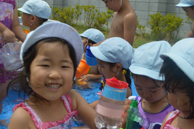 今日はめろん組さんのプールの様子です。 天気があやしかったですが、プールに入れて子ども達も大喜びです(*^▽^*)♪ 「冷たい!!」と言いながらも水に浸かりまずはバタ足です♪ &…