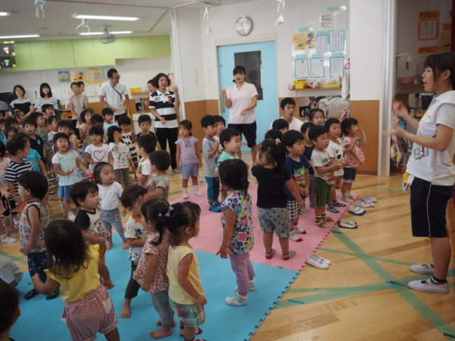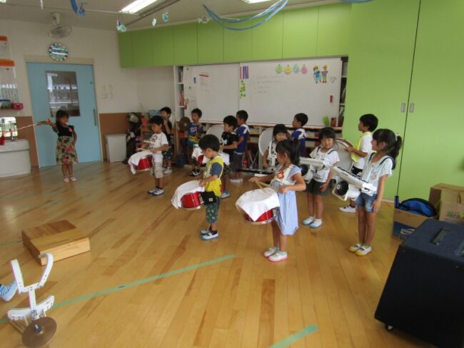たいよう組の様子です。 1週間後の夏祭りに向けて和太鼓の発表をしました! 少し緊張するね・・・どきどき! しかし、演奏が始まるとかっこいい表情で行っていました(^_…