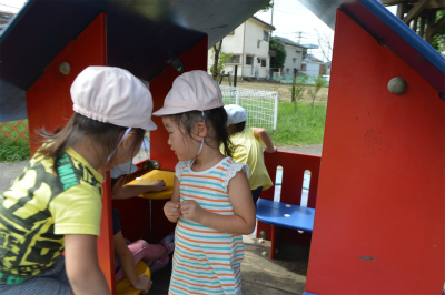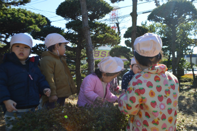 今日は幼稚部と保育部で園周りに行きました。 柿やみかんのほかに 小さな、いちごも見つける事ができました。 発見したのはいちご組さんでした。 「先生あったー!」と教えてくれていました。 散歩のあとは、園庭で遊びました。 幼…