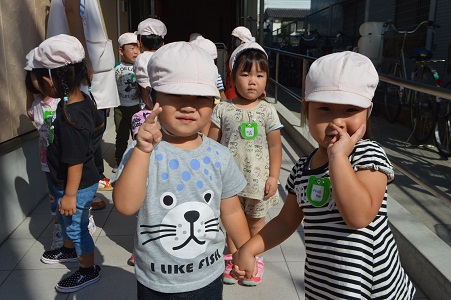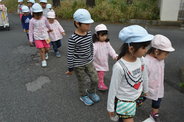 今日はいちご組さんです。 だいすきな散歩に行きます。みんな準備ができました。 先生と一緒にマル◎ 「先生、はやく散歩に行きたいよー。」と言うお友達。 順番に靴を履いていきます(^^) 散歩はた…