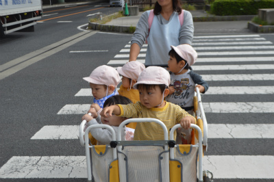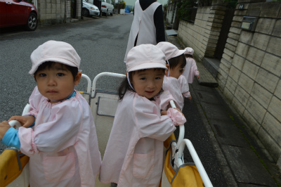 今日はもも組さんです!(^^)! おやつ後少しだけお部屋で遊び、 その後はみんなで園周りのお散歩に行ってきました♫ カートに座って 行ってきまーす\(^o^)/ …